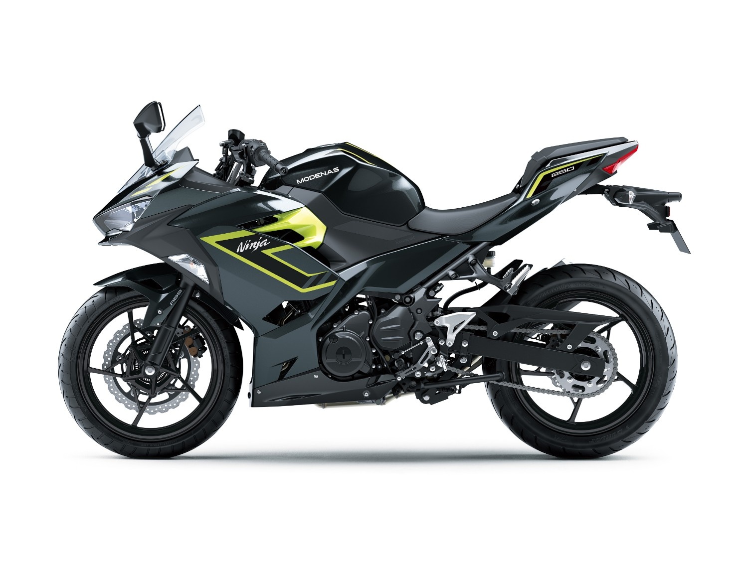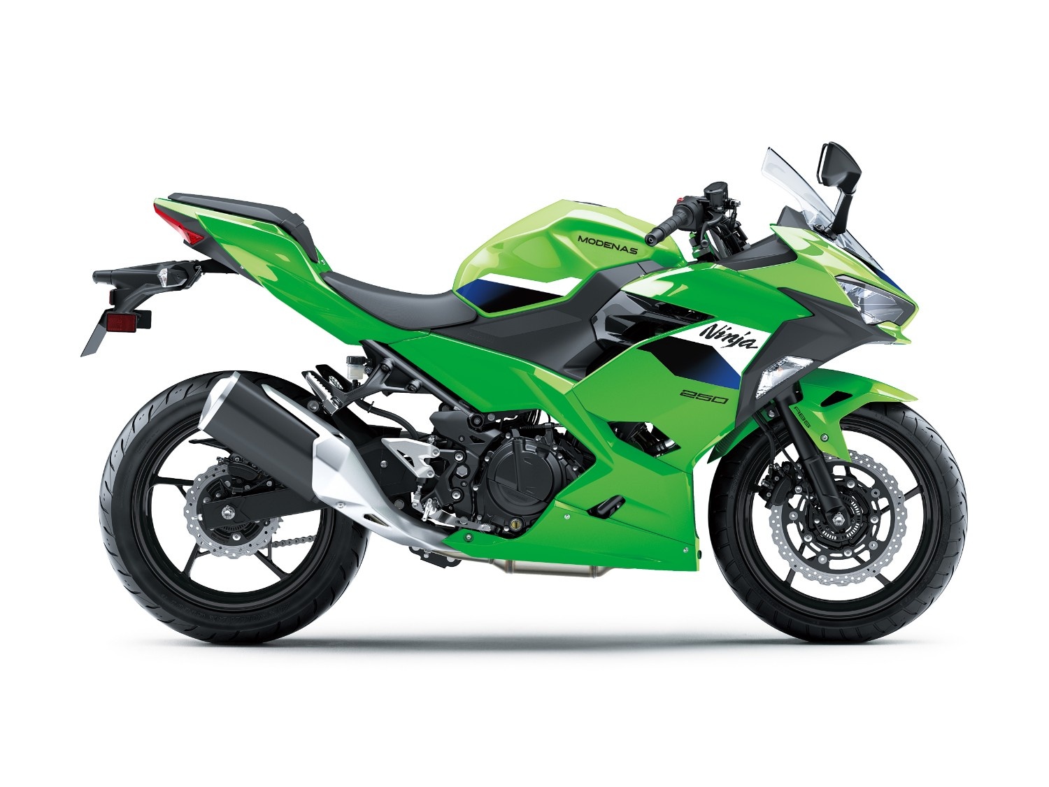 The Ninja 250 slim LED headlamps (each featuring low and high beams, as well as a LED position lamp) are highly visible and offer significantly increased brightness.SPECIFICATIONS